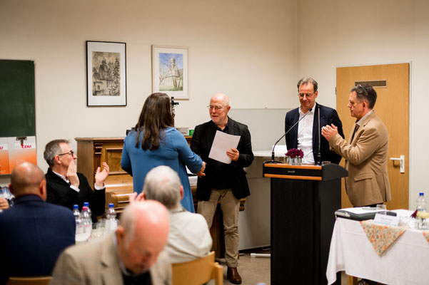 Im Anschluss ehrte die CDU zahlreiche Mitglieder für ihre Treue zur Partei – mit Mitgliedschaften von 25 bis beeindruckenden 65 Jahren. Die Geehrten erhielten großen Applaus und aufrichtige Anerkennung für ihre langjährige Verbundenheit und ihr stetiges Engagement für die CDU und die Stadt Heusenstamm.
